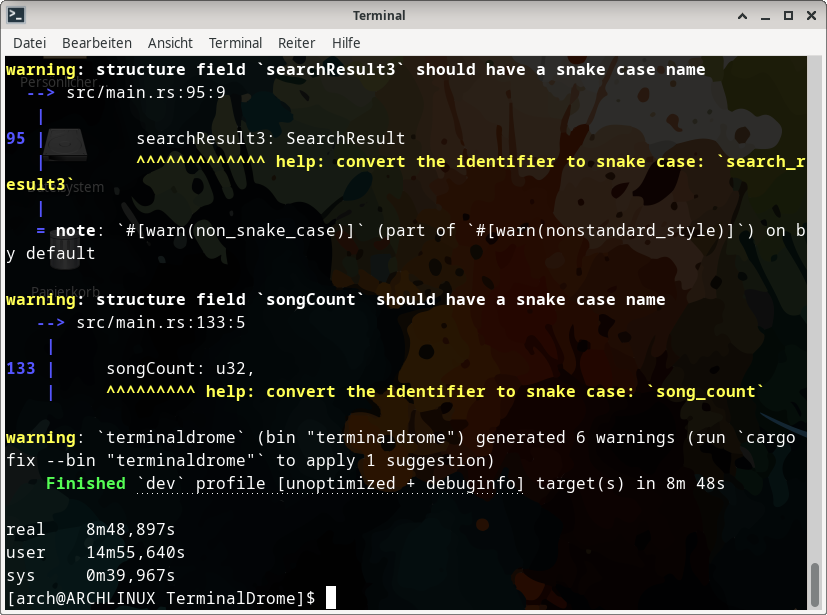 So I want to tell you how long it lasts to compile TerminalDrome in Version 0.2.3 on my Powermac G5 (11,2) Dual 2 GHz 12 GB-Ram.