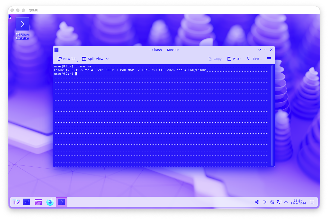 A Screenshot of T2/Linux 26.3 with KDE Plasma