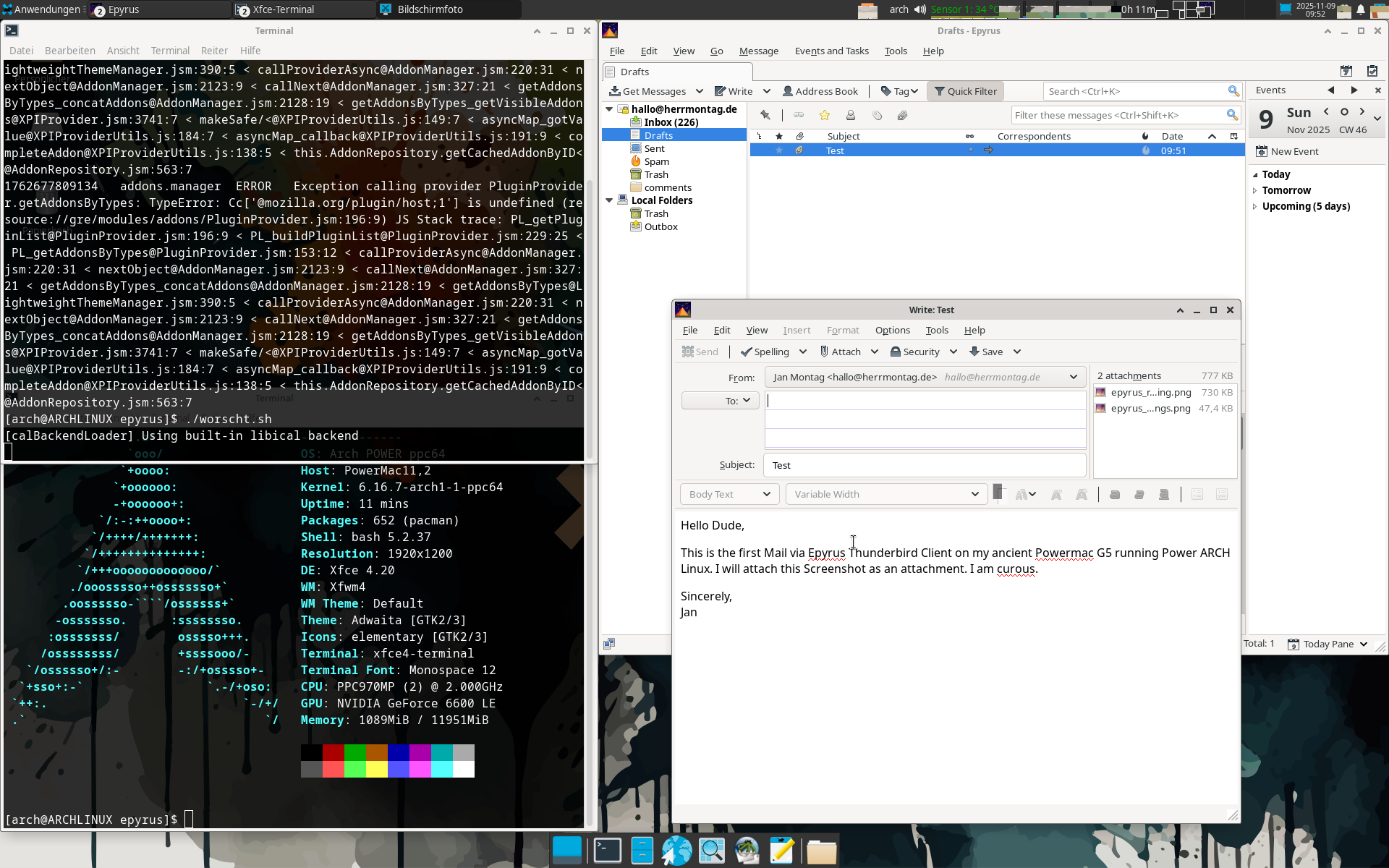 Tags: archlinux, arch, powermacg5, ppc64, thunderbird, email, thunderbird, epyrus, seamonkey